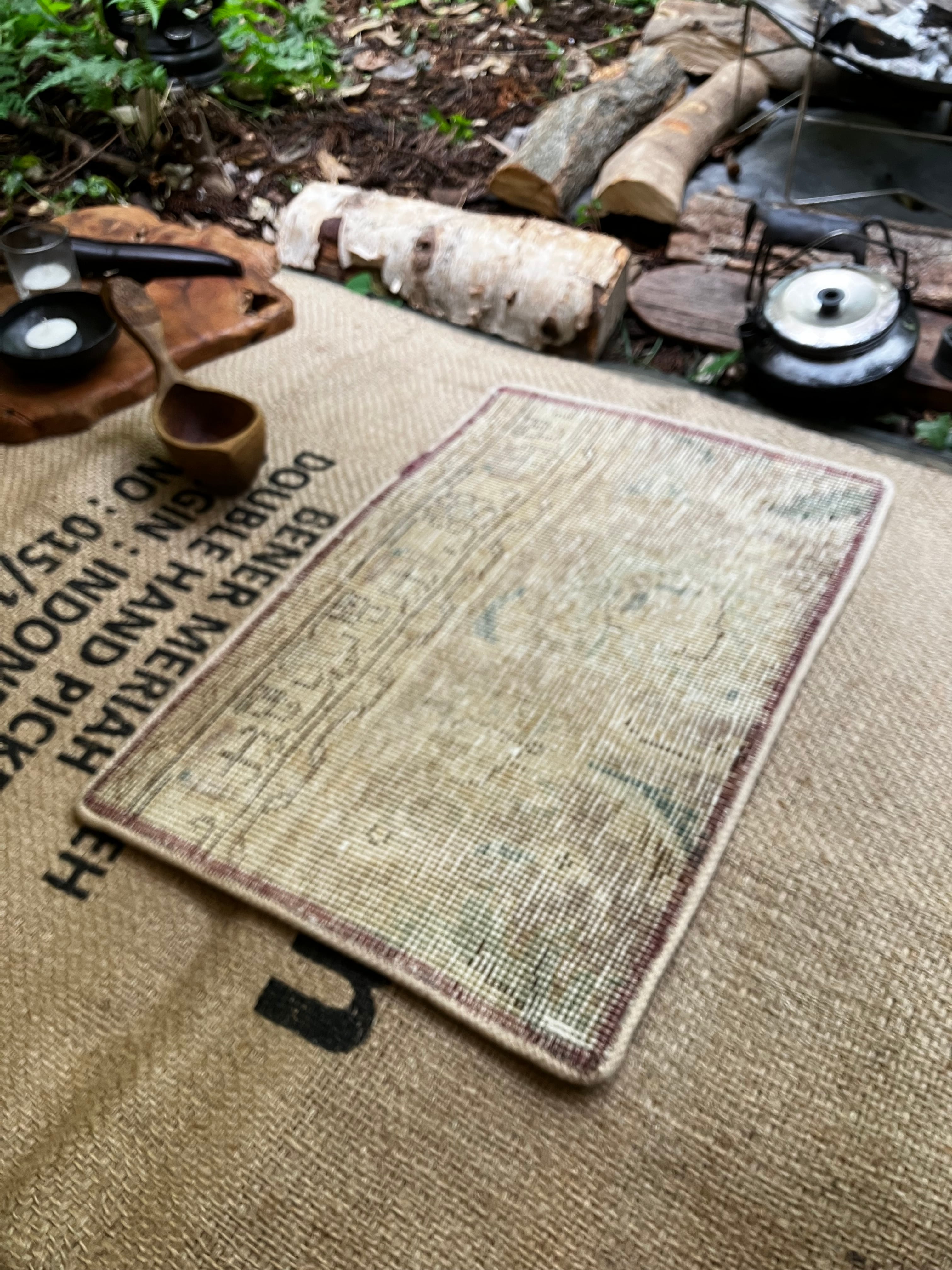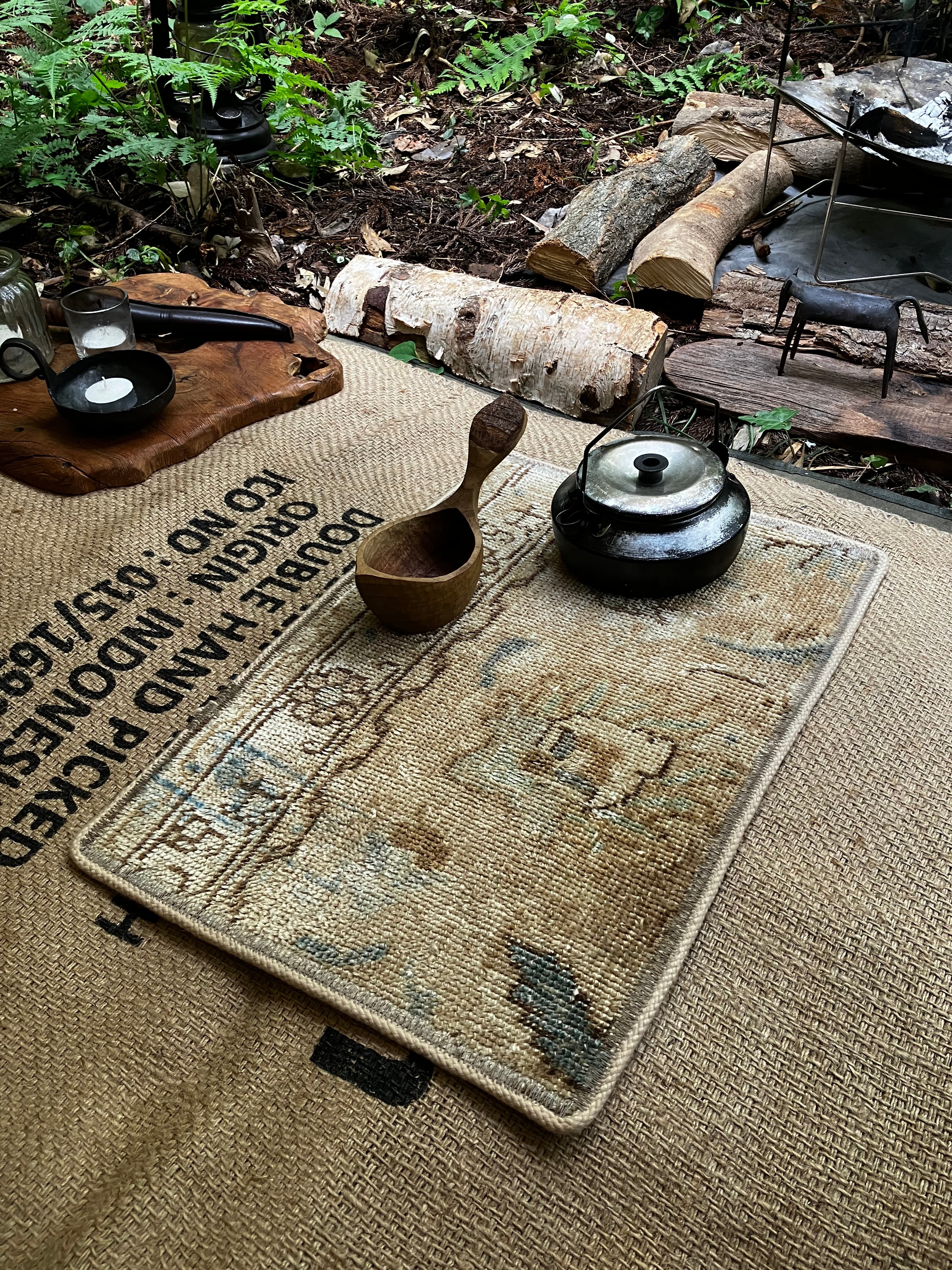 古いトライバルラグをプレイスマットに